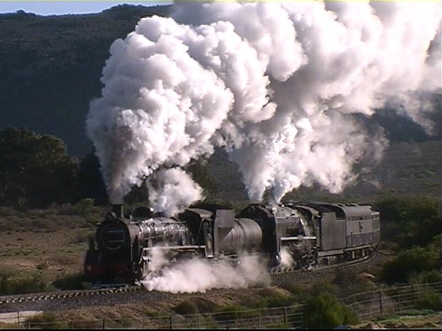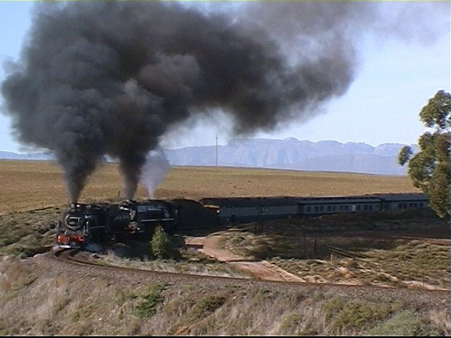 more information and pictures. 26 May - 16D 860: Simonstown - Muizenberg 27 May - 26 3450: Worcester - Ashton 28 May - 19D 3323: Wolseley - Ceres - Prince Alfred Hamlet 28 May - 19D 3321+3323: Hermon - Porterville 2 June - 19D 3323 & 15F 3153: Graafwater - Malmesbury Thanks to Beryl from Northumbria Travel for this charter, along with Ian Pretorius for his local support, plus the THF as always for supplying the steam locomotives and the wonderful Union Limited train. Trevor. All pictures Copyright © 2002 Trevor Staats |